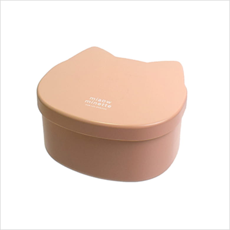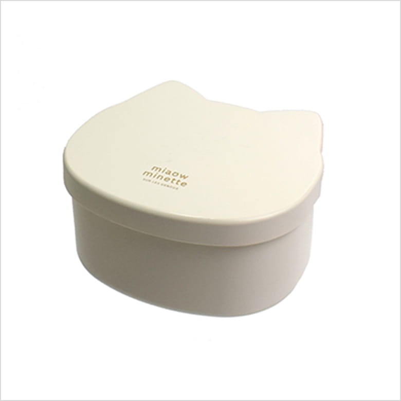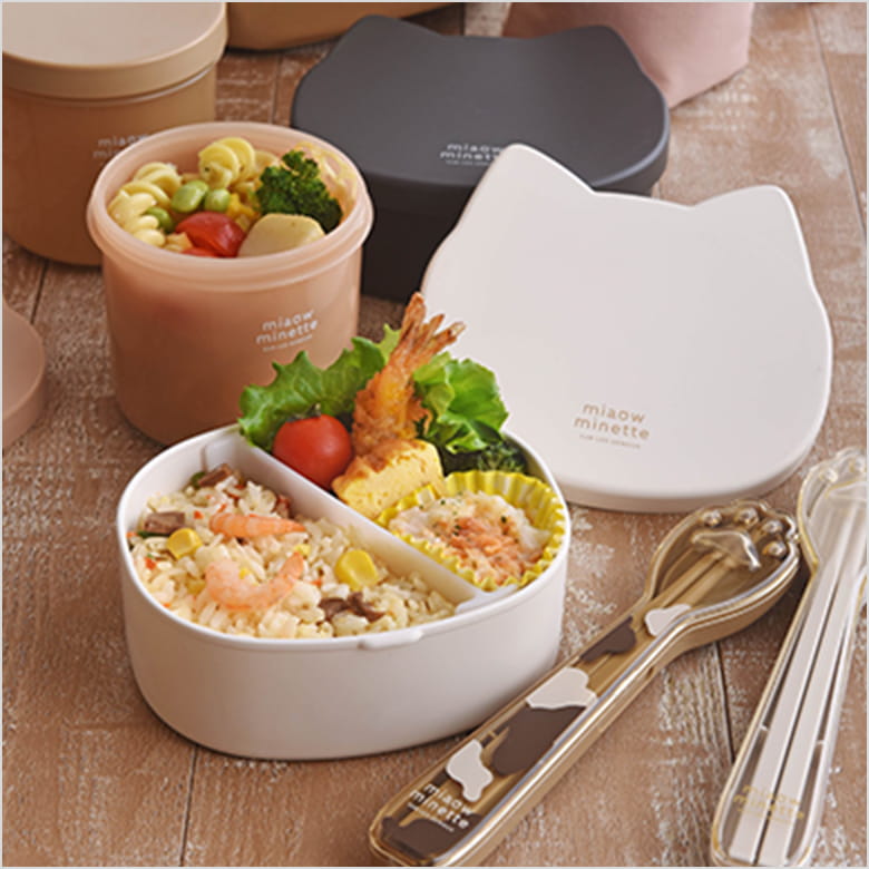 フタに付いたねこみみがキュートなランチボックス。本体はオーバル型でおかずをつめやすい。フタを外して電子レンジOK。食洗機OK。